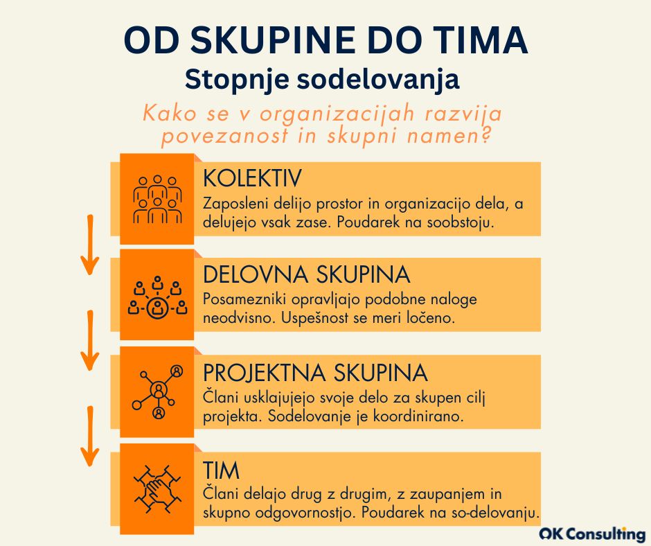 Vsaka delovna ali projektna skupina lahko postane tim, če člani redno in aktivno sodelujejo ter imajo jasen skupni cilj.